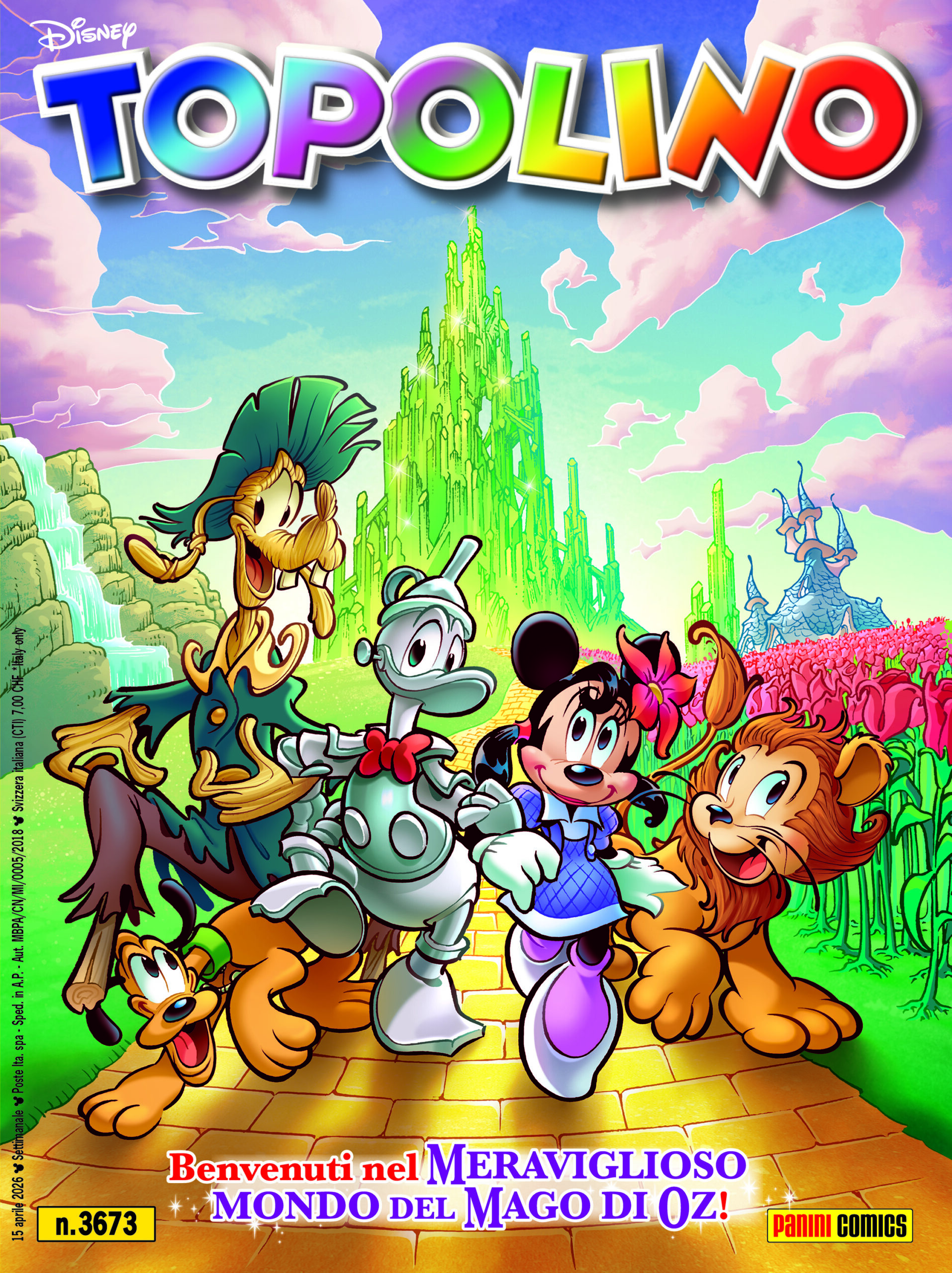 La storia si sviluppa in tre parti, e debutta proprio su questo numero con il suo primo capitolo; il secondo e il terzo episodio saranno pubblicati rispettivamente su Topolino 3674 e 3675. Un inizio che introduce il viaggio di Minni (Che reinterpreta Dorothy) e dei suoi compagni, trasformandolo in una metafora universale di coraggio, amicizia e ricerca della propria identità. A firmarla è il duo vincente composto da Francesco Artibani ai testi e Paolo Mottura ai disegni, che portano sulle pagine del settimanale una raffinata rivisitazione del celebre romanzo di L. Frank Baum. Un classico senza tempo che, a oltre un secolo dalla sua pubblicazione, continua ad affascinare e ispirare, attraversando generazioni e linguaggi — dal cinema al teatro, fino al fumetto.